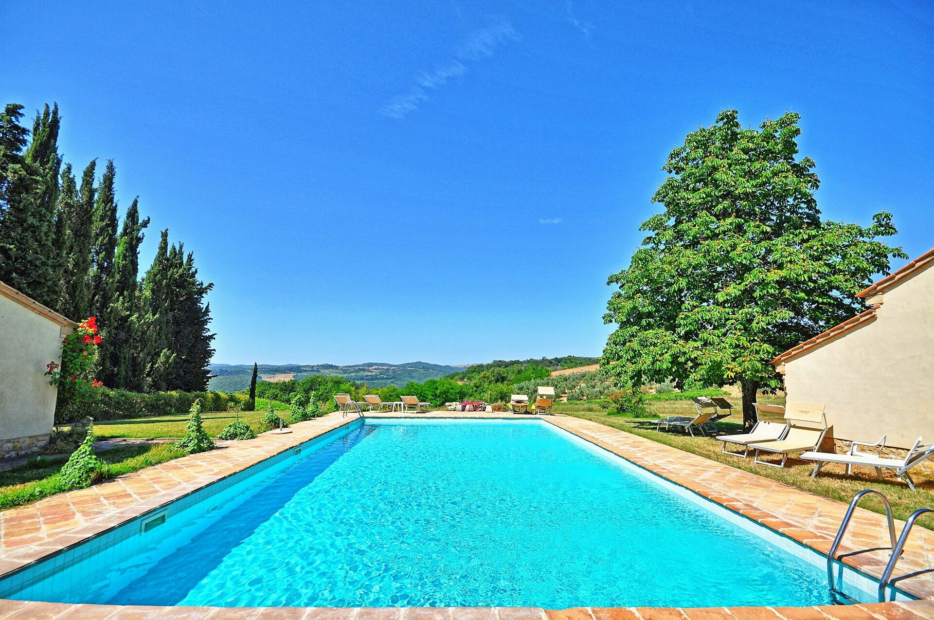 Afstanden: San Gimignano met alle winkels op 5,5 km, Poggibonsi 15 km, Volterra 30 km, Siena 50 km, Florence (vliegveld) 55 km, Pisa (vliegveld) 85 km, Lucca 90 km. Het kustgebied bij Cecina en Castiglioncello met de stranden op 85 km. Gasten hebben de beschikking over:- Panoramisch gelegen buitenruimtes